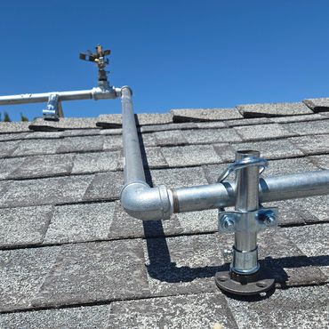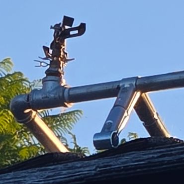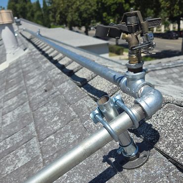 H2OUSE GUARD rooftop sprinkler systems are designed to reduce the risk of fire damage by spraying water on rooftops during emergency fire events. While our systems can help mitigate the impact of airborne embers, they do not guarantee complete protection from fire. H2ouse Guard is not a fire extinguisher system.